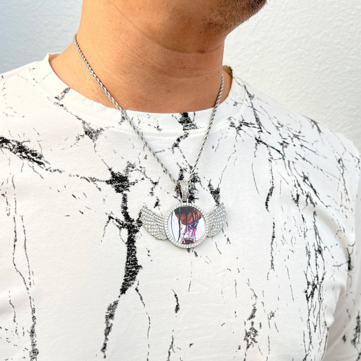 Rep your loved ones with this high quality photo pendant. These are thick and heavy made with a solid back and hand set stones.