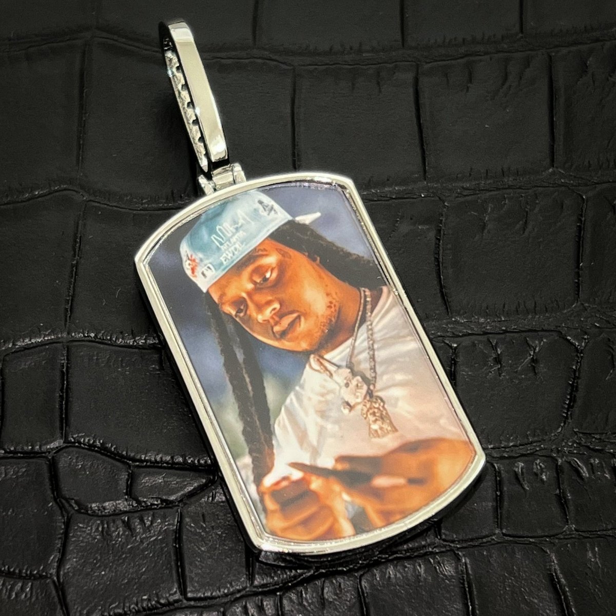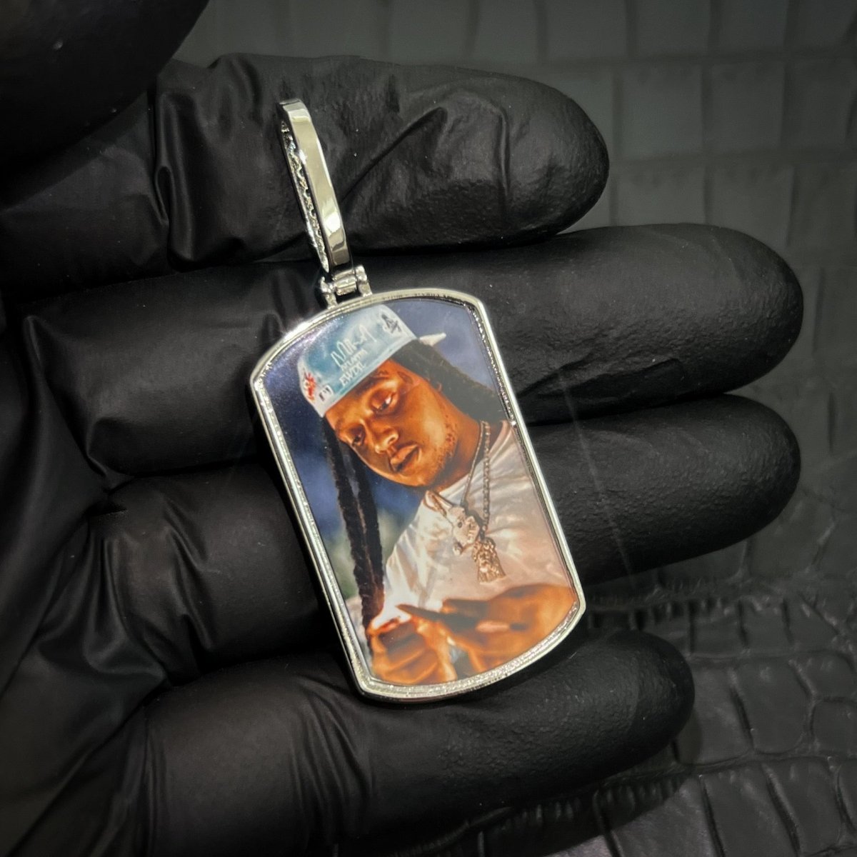 Rep your loved ones with this high quality reversible photo pendant. Iced on one side and plain jane on the other for 2 different looks.