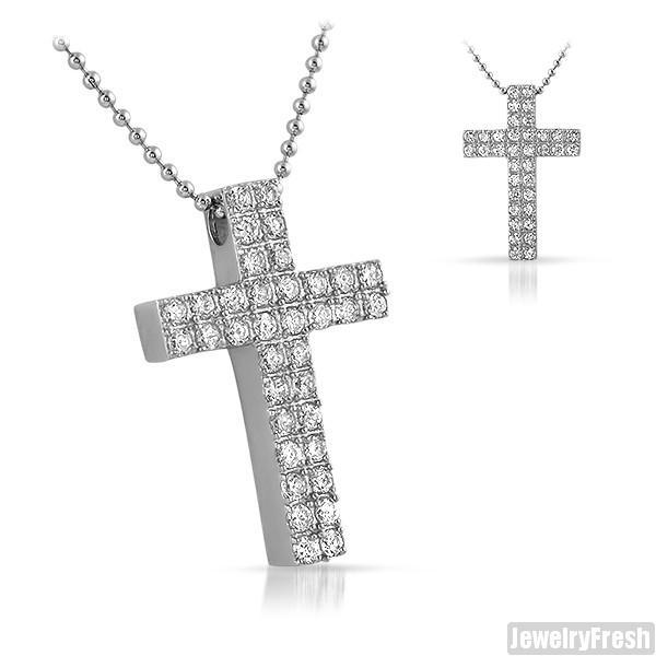 This high quality cross is made out of a block of 316L stainless steel. It will never fade or tarnish. All stones are 3mm size VVS flawless lab created diamonds with incredible shine. It comes with a free 36 inch stainless steel bead chain and you can cut it down to any length once you receive it. Order yours today!