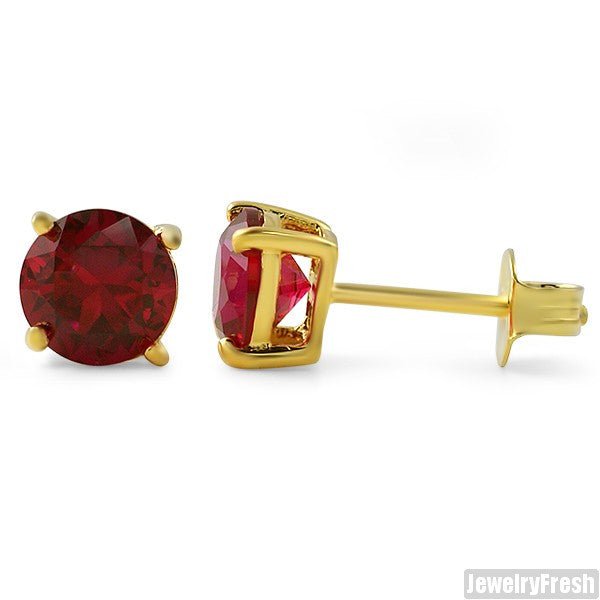 14k Gold Finish Lab Made Ruby Stud Earrings