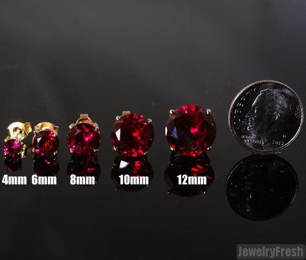 Introducing JewelryFresh exclusive Superior grade studs. These are the best quality lab made rubies. These are not colored CZ stones but a lab made ruby with high clarity and brilliance. They are set in a thick hand made basket setting made out of genuine 925 sterling silver. If you want a pair of earrings with incredible shine set in real precious metal, these are it. Order your pair now and rock them in just a few days!