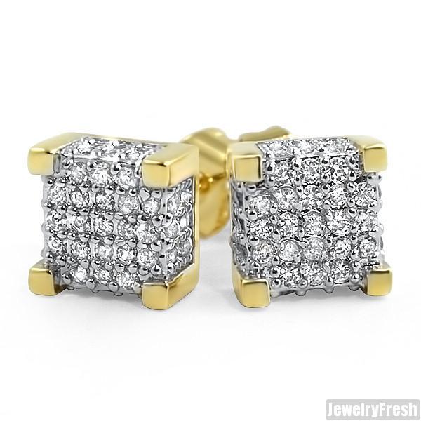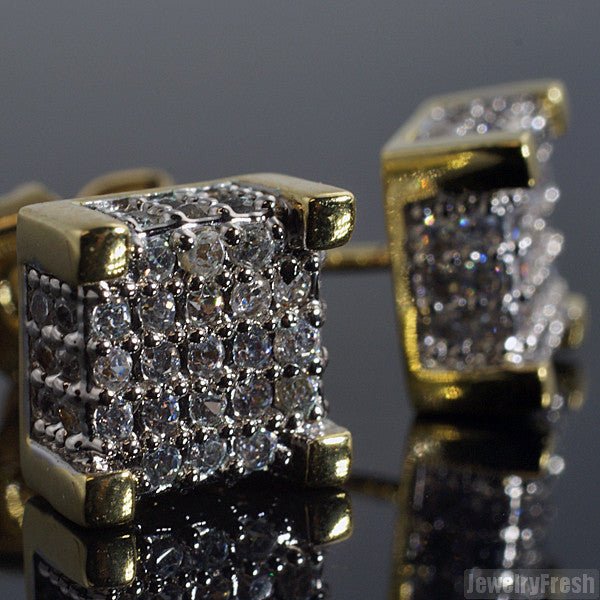 18k Gold Finish 360 Cube Micropave CZ Earrings