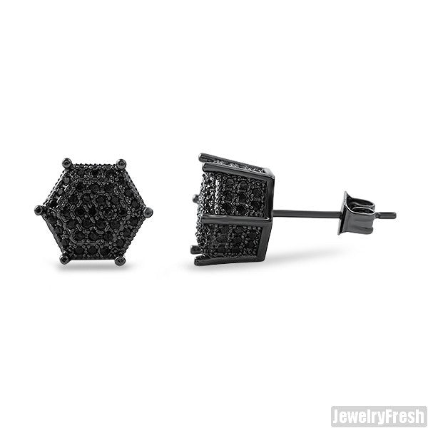 9mm Black 3D Polygon Pave CZ Earrings
