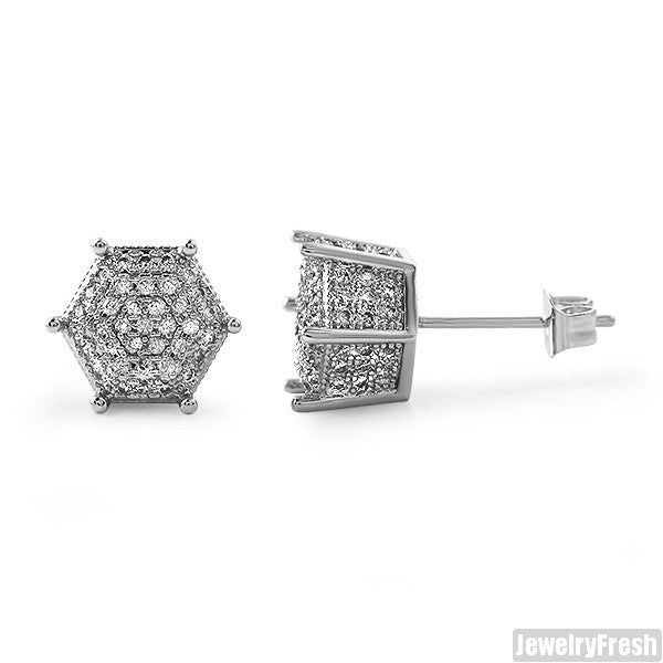 9mm Silver 3D Polygon Pave CZ Earrings