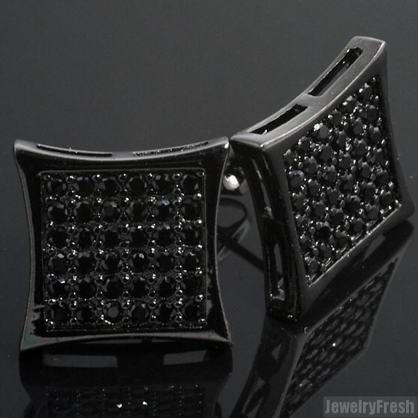 All Black 72 Stone CZ Jumbo Mens Kite Earrings