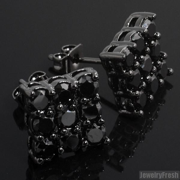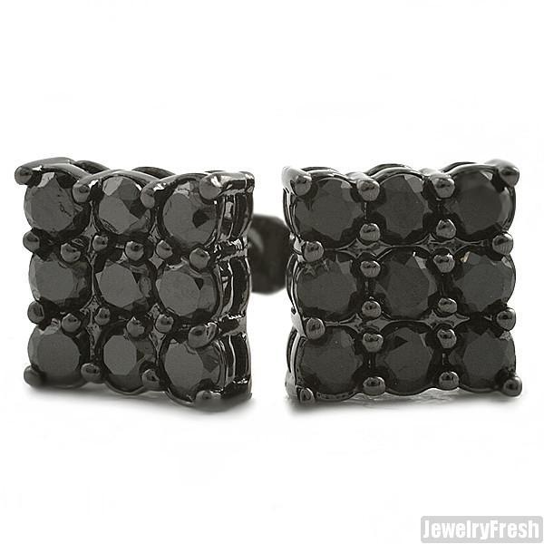 Black 9 Stone Prong Set CZ Stud Earrings 2 Carat