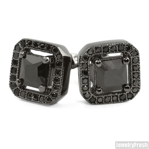All Black Princess Cut Simulated Diamond Earrings
