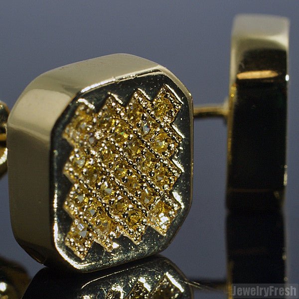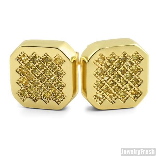 Canary Yellow Hexagon Micro Pave CZ Stud Earrings