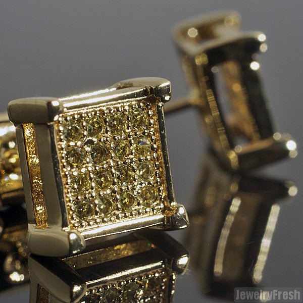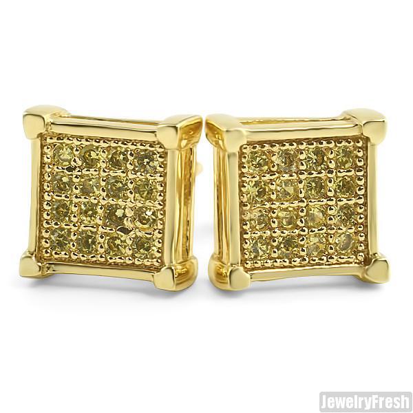 Canary Yellow Micro Pave CZ Square Earrings