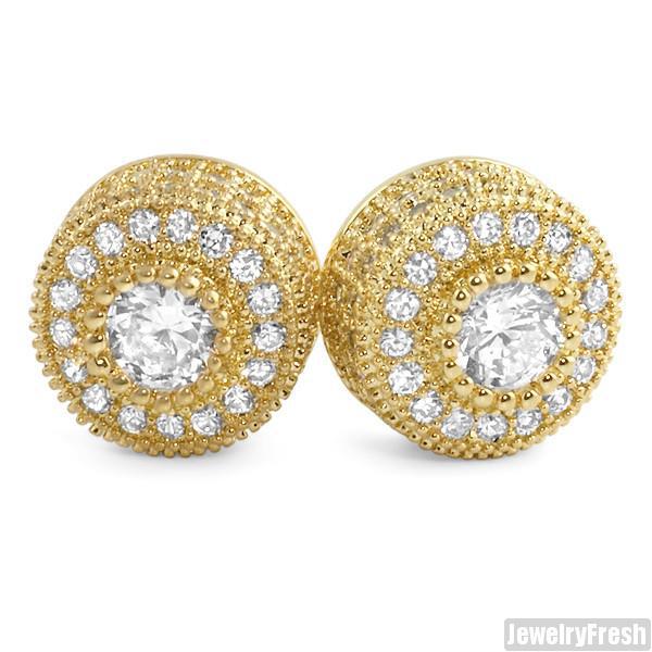 Gold Tone Fancy Cluster Simulated Diamond Studs