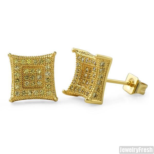 Gold Canary 9mm CZ Micropave Royalty Earrings