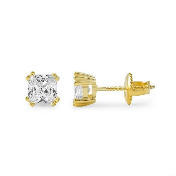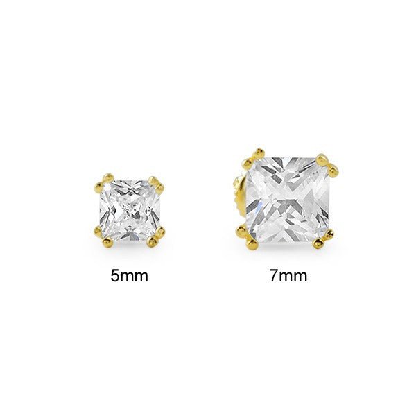 Gold Fancy Princess Cut CZ Studs Screwback