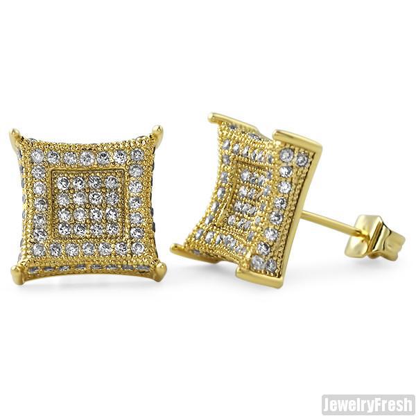 Jumbo 12mm CZ Mens Royalty Earrings Gold