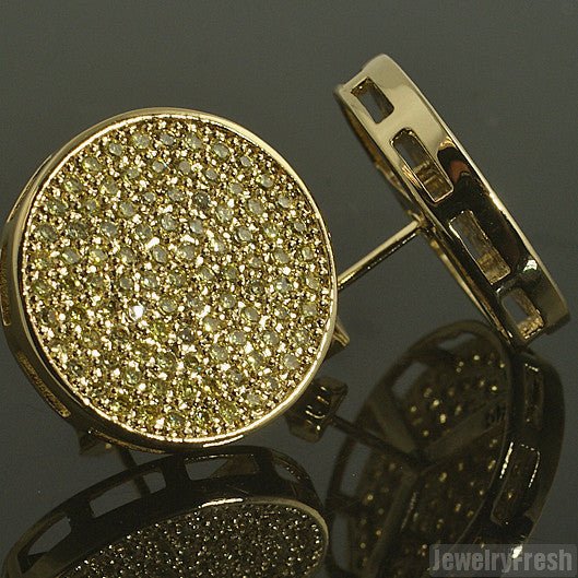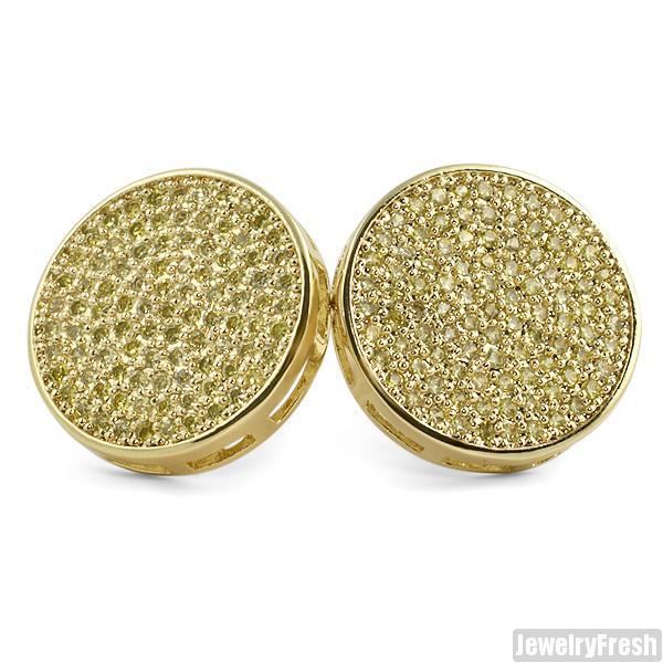 Gold and Canary Stones Iced Out Jumbo Circle Studs