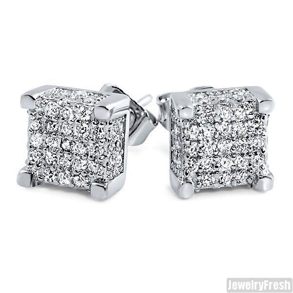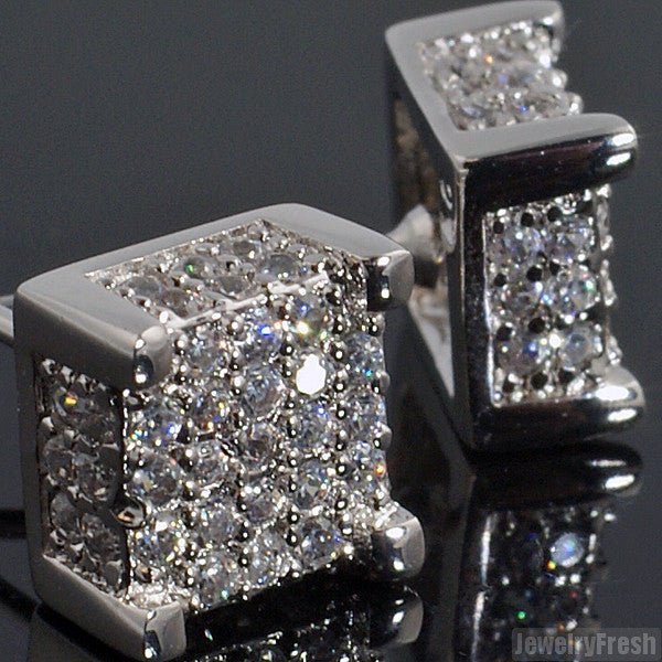 White Gold Finish Iced Out Box Stud Earrings