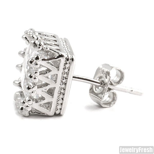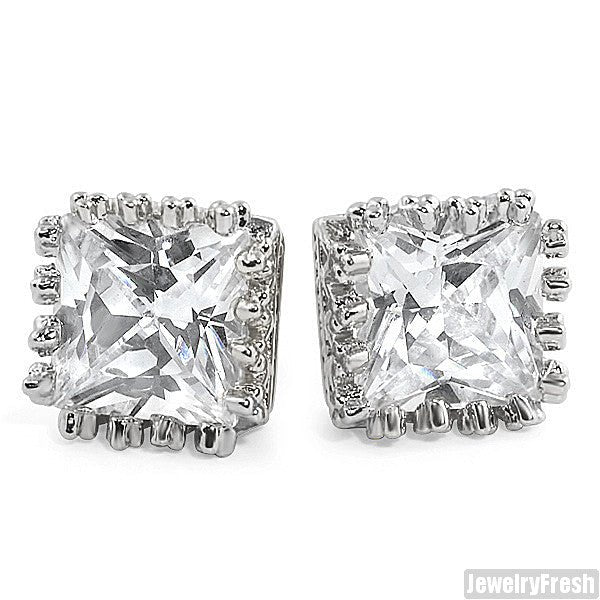 Rhodium Finish 2 Carat Princess Cut Crown Earrings