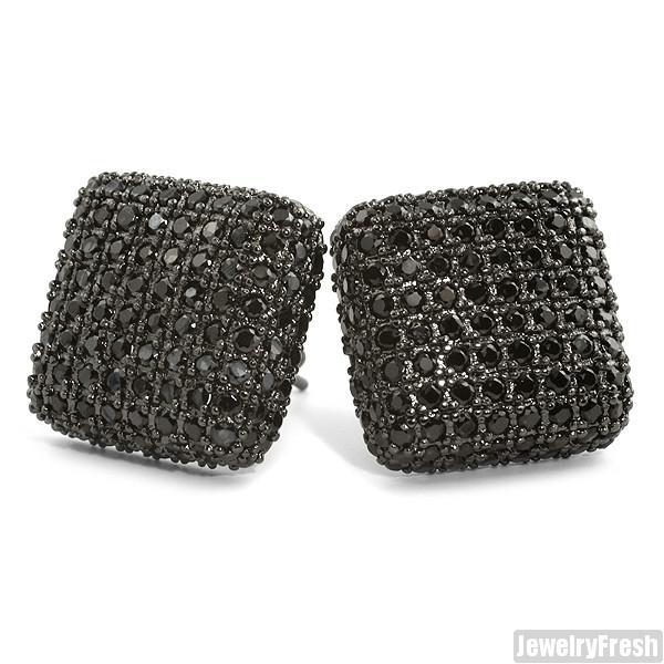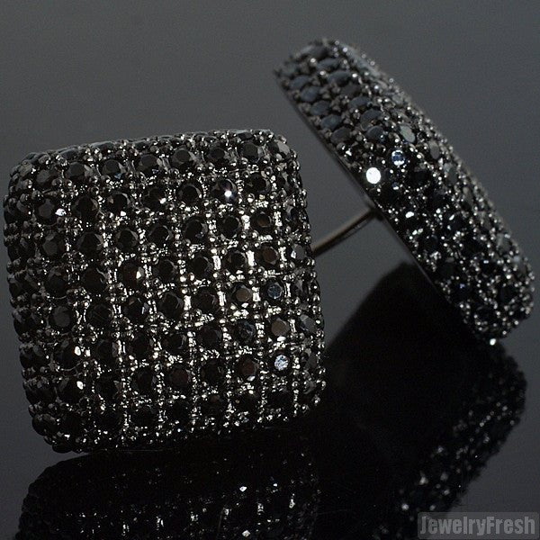 Black Jumbo Full Iced Out 360 Cushion Earrings