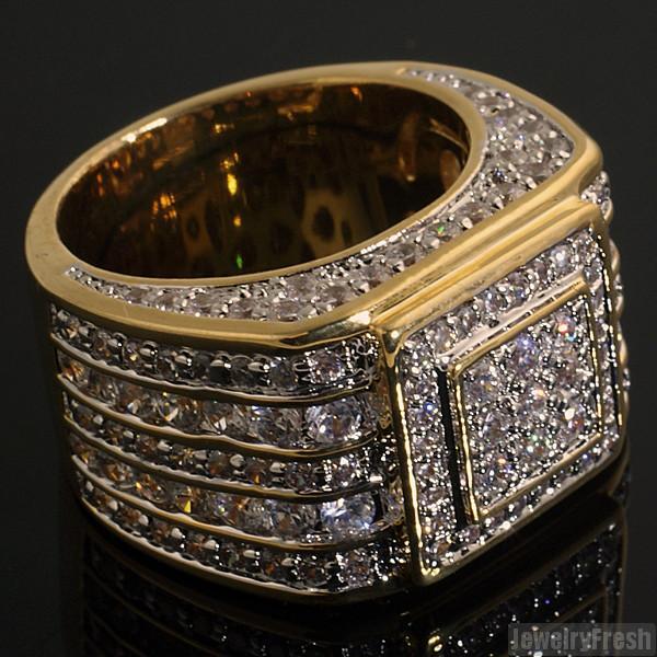 This custom made ring is one of the highest quality we ever carried. It is made exactly like a real diamond ring, an exact perfect replica of a $8,000 ring. It has stones everywhere with prong set and channel set stones on the sides. Its a thick and heavy ring with a caged back. It looks real and feels real. Order yours now and rock this ring in just a few days.