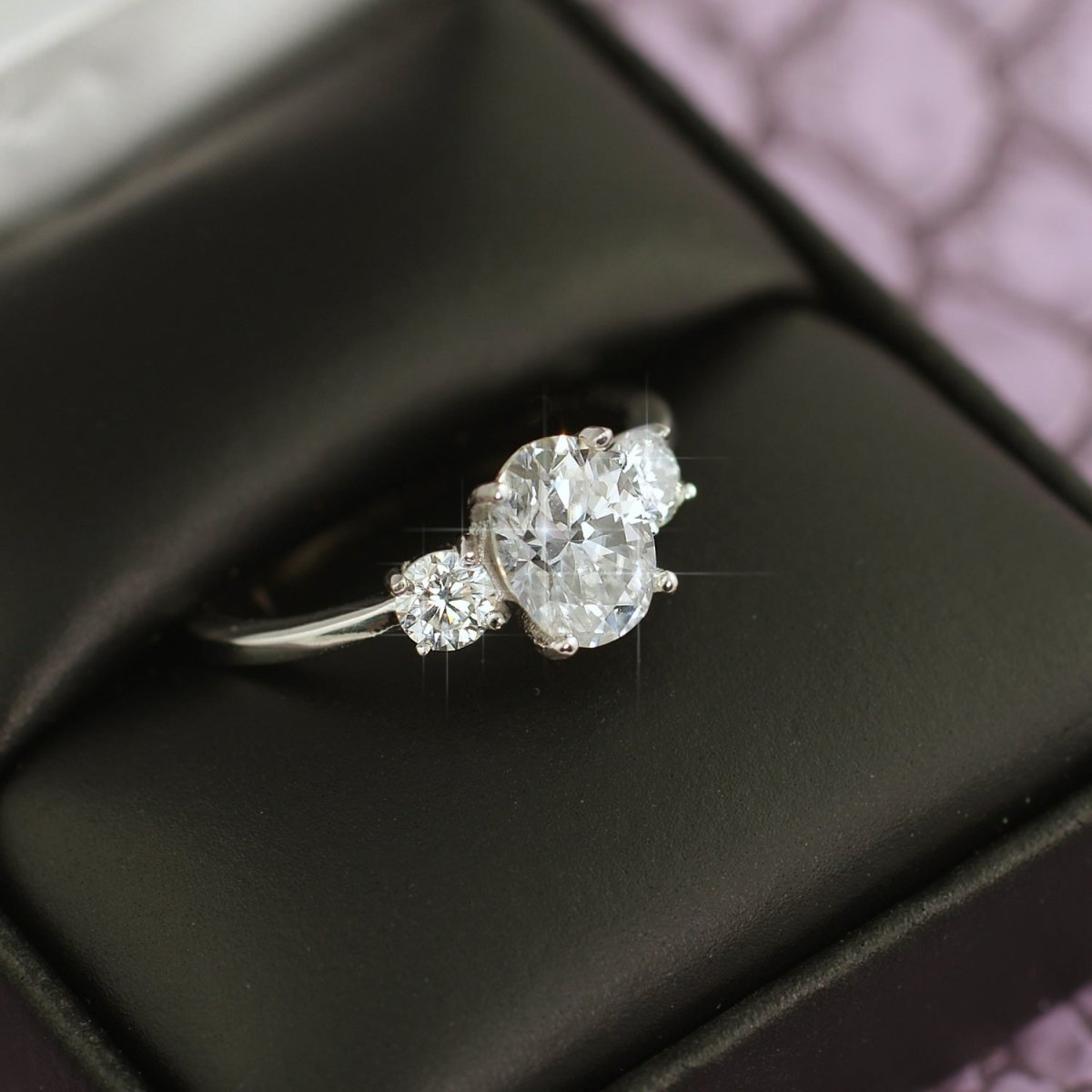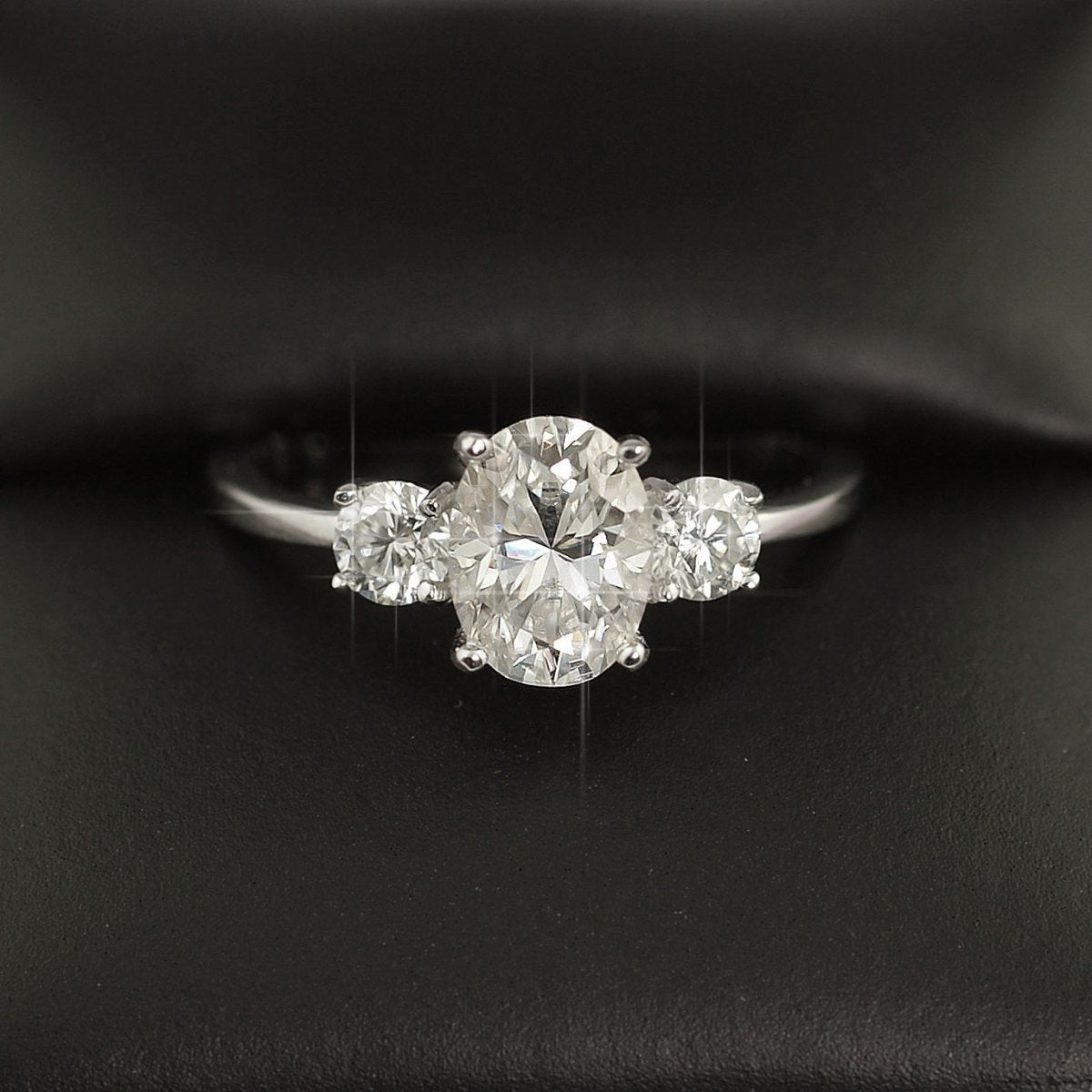 1.9 CTW Oval 3 Stone VVS1 Moissanite Engagement Ring