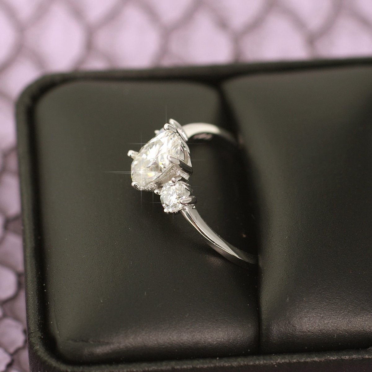 Moissanite gives you the identical look of diamonds without a crazy price tag, plus they are environmentally friendly. With a hardness level of 9.25, they will last a lifetime. Diamond are the hardest material on earth and it ranks 10 while most cheap stones like CZ have a hardness of 3-4 so they are not suitable to use on an engagement ring. They will scratch and lose shine over the years. Lab conducted light tests prove that moissanite outshines any other gemstone. They are so similar to diamonds, they even pass many handheld diamond testers. Get all of the luxury of diamonds without spending $15,000+ on a diamond version of this ring.