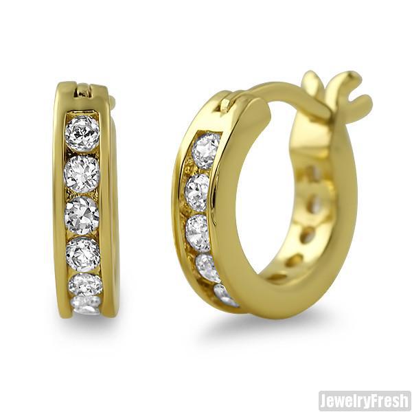 18k Gold Finish Iced CZ Mini Hoop Earrings for Men