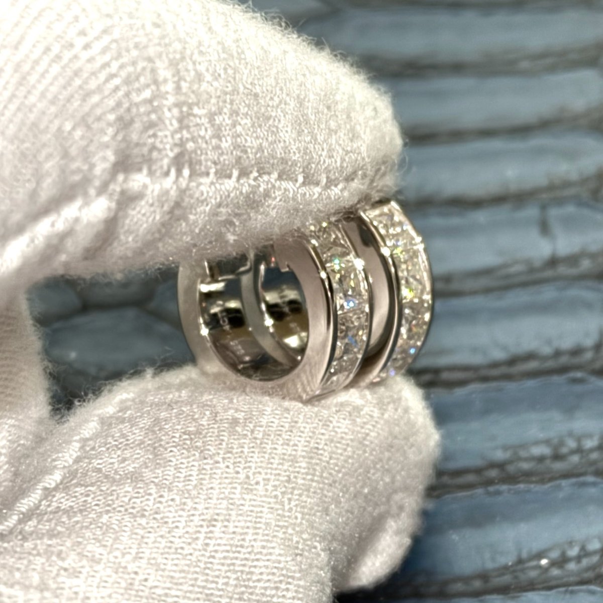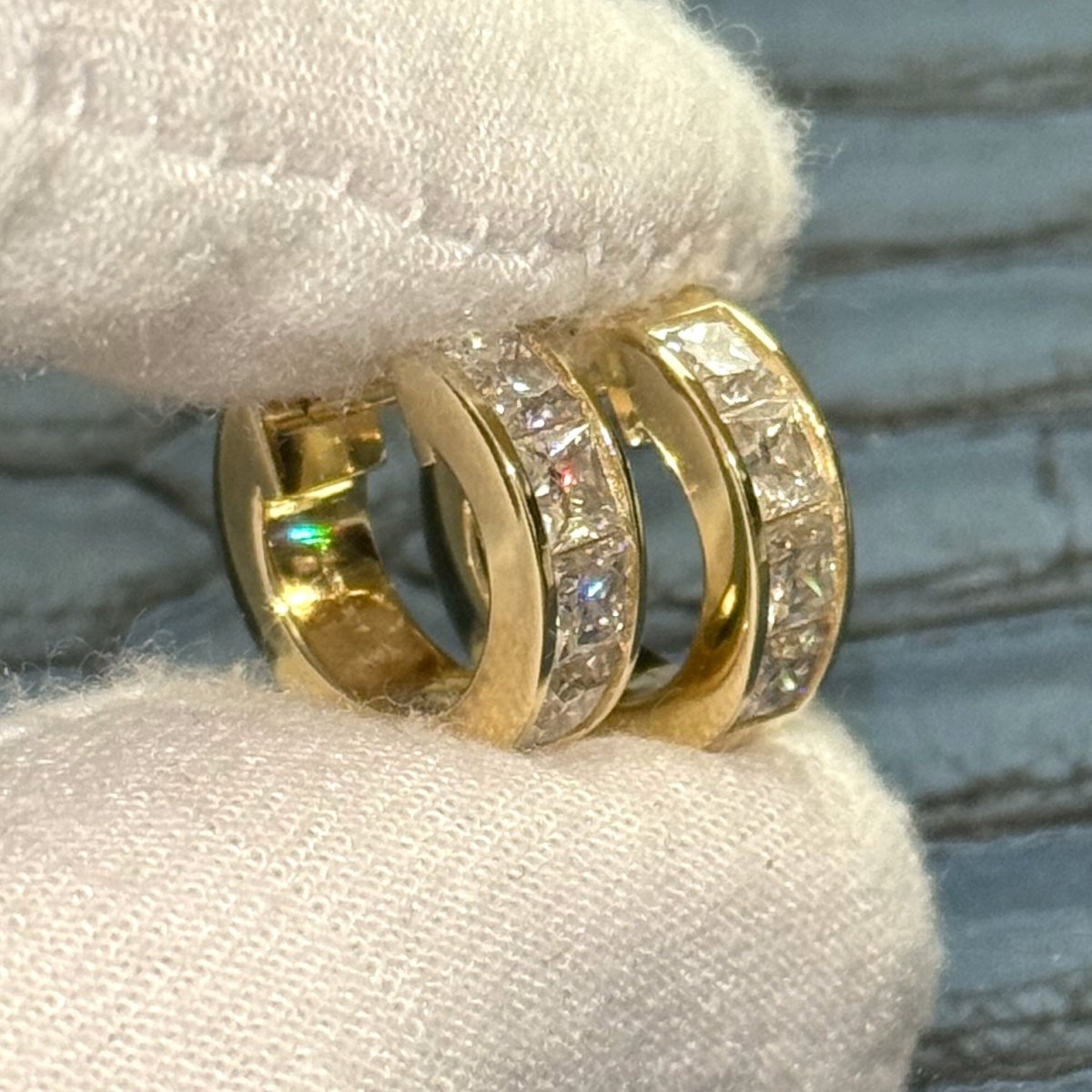 Stand out from the crowd with princess cuts! These have a wide look and clean channel setting with no prongs for the ultimate shine. Get yours today.