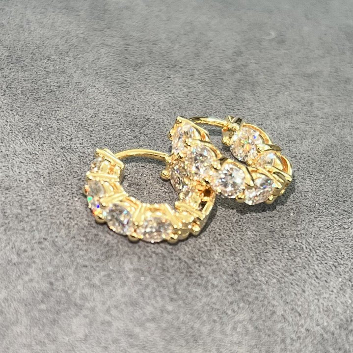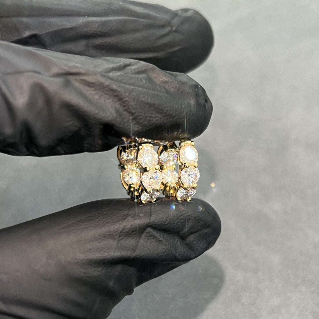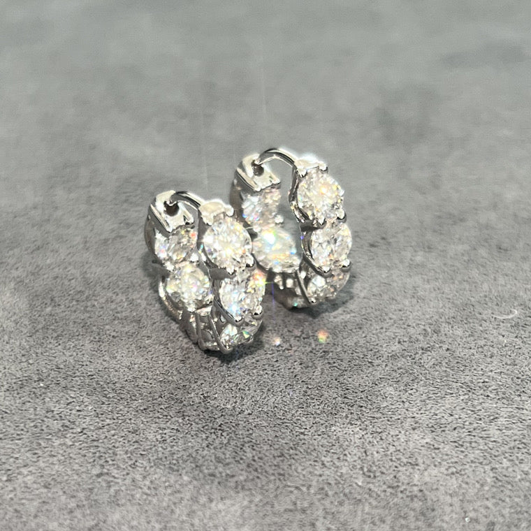 Shine bright with VVS1 clarity moissanite hoop earrings! These earrings hit harder than CZ stones but doesn't have the high cost of diamonds. Its flooded out with 25 pointer stones for a total of 3 carats. Looks large and expensive!