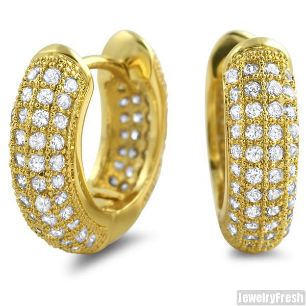 Gold Finish 12mm Micropave Prong Set CZ Hoop Earrings