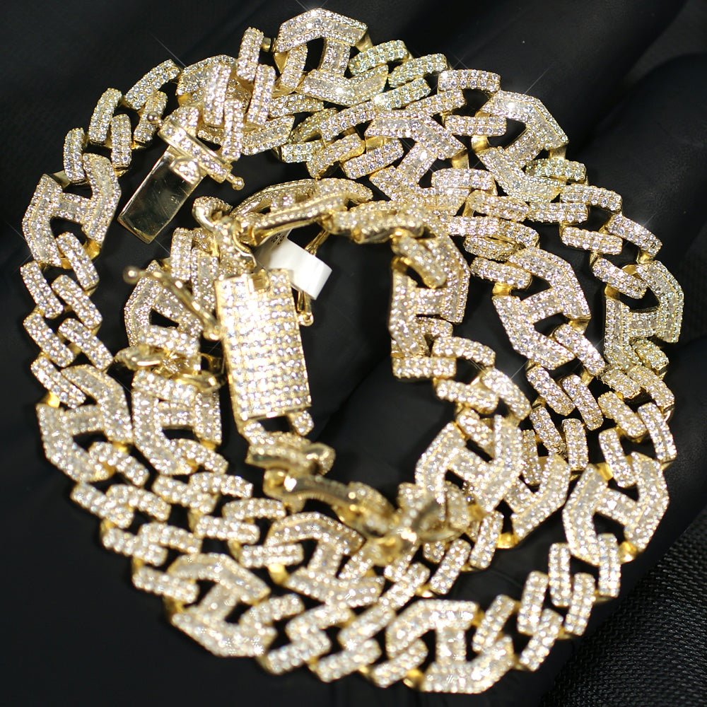 If you want some extra hot sauce on your cuban chain to make it extra drippy, here it is. This incredible work of art will turn heads everywhere, feature straight edge cuban links and oversized station links flooded with baguette cut stones. This luxurious chain features rich detailing for that true real diamond look. It looks and feels like a million bucks. Get yours today and rock it in just a few days!