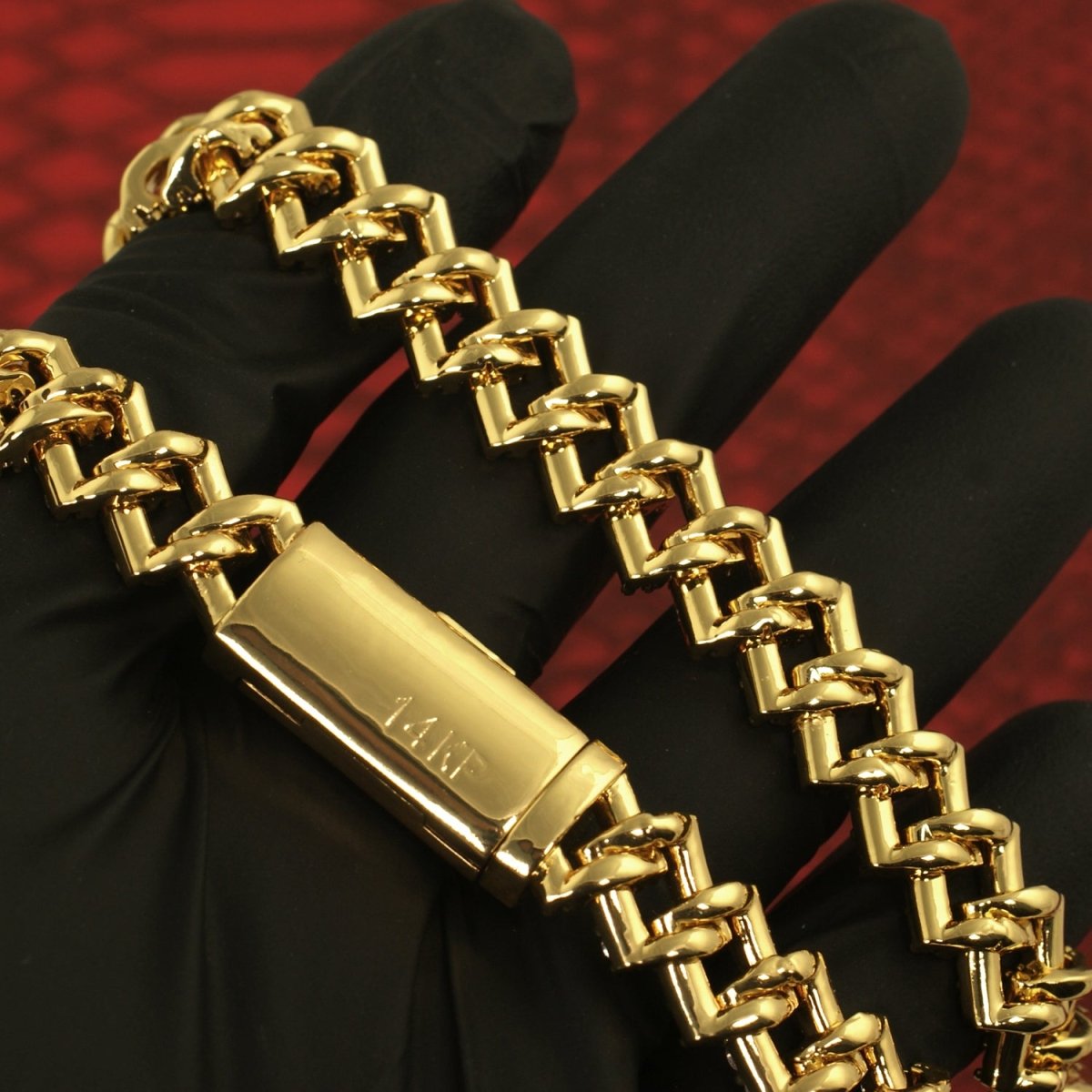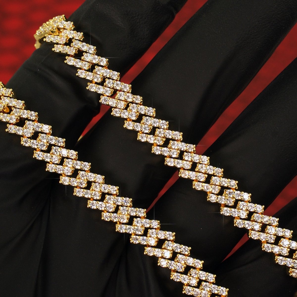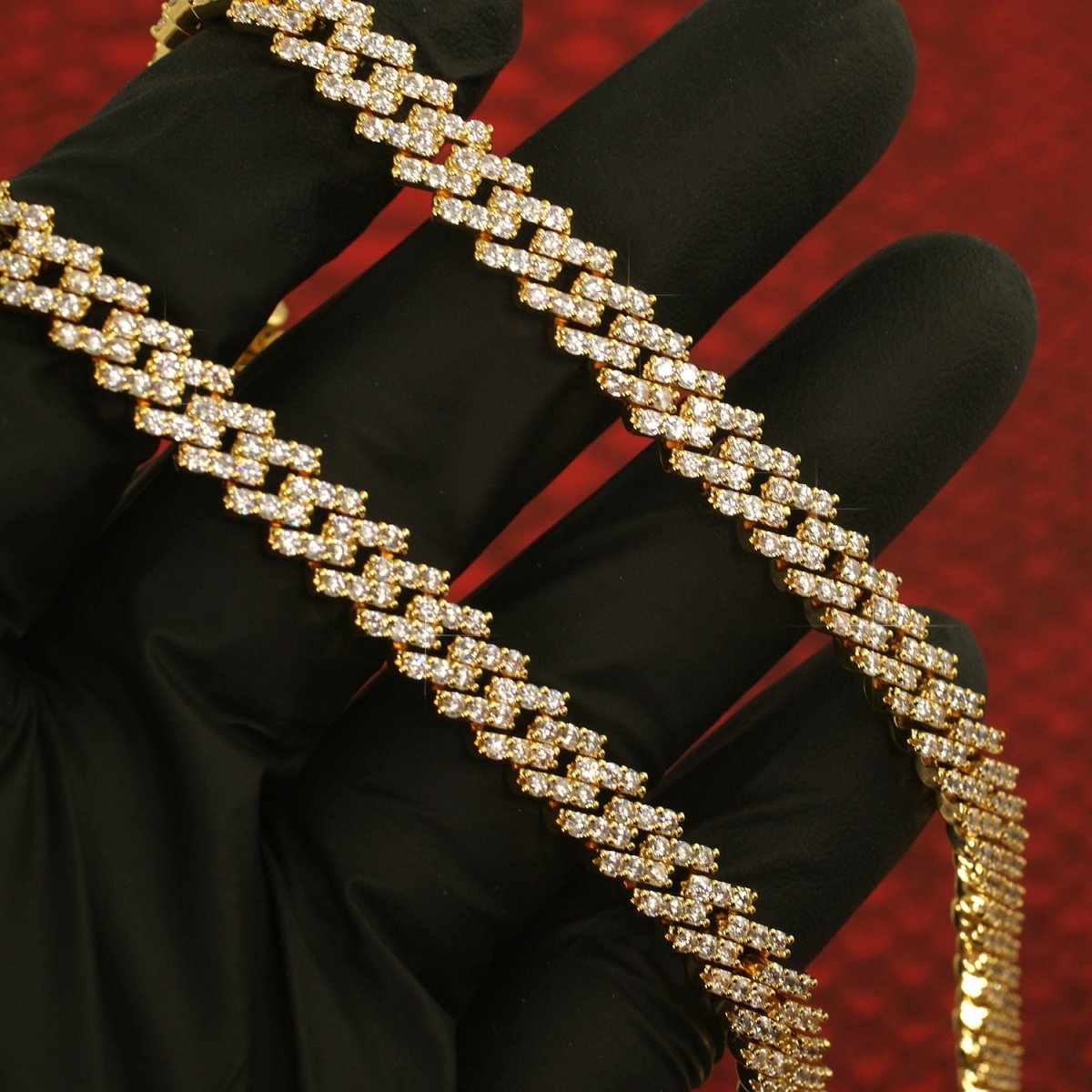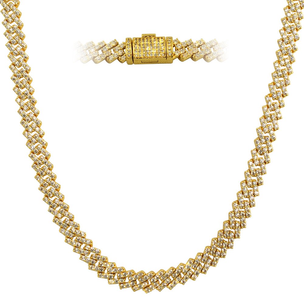 These chains are made with the highest grade simulated diamonds with the same cut and polish techniques used on natural diamonds. The chain is hand made by our master jewelers just like a solid gold chain. The large box clasp is easy to use and secure. This chain can be ordered in solid gold starting at $6000 and up. Please contact us for inquiries.