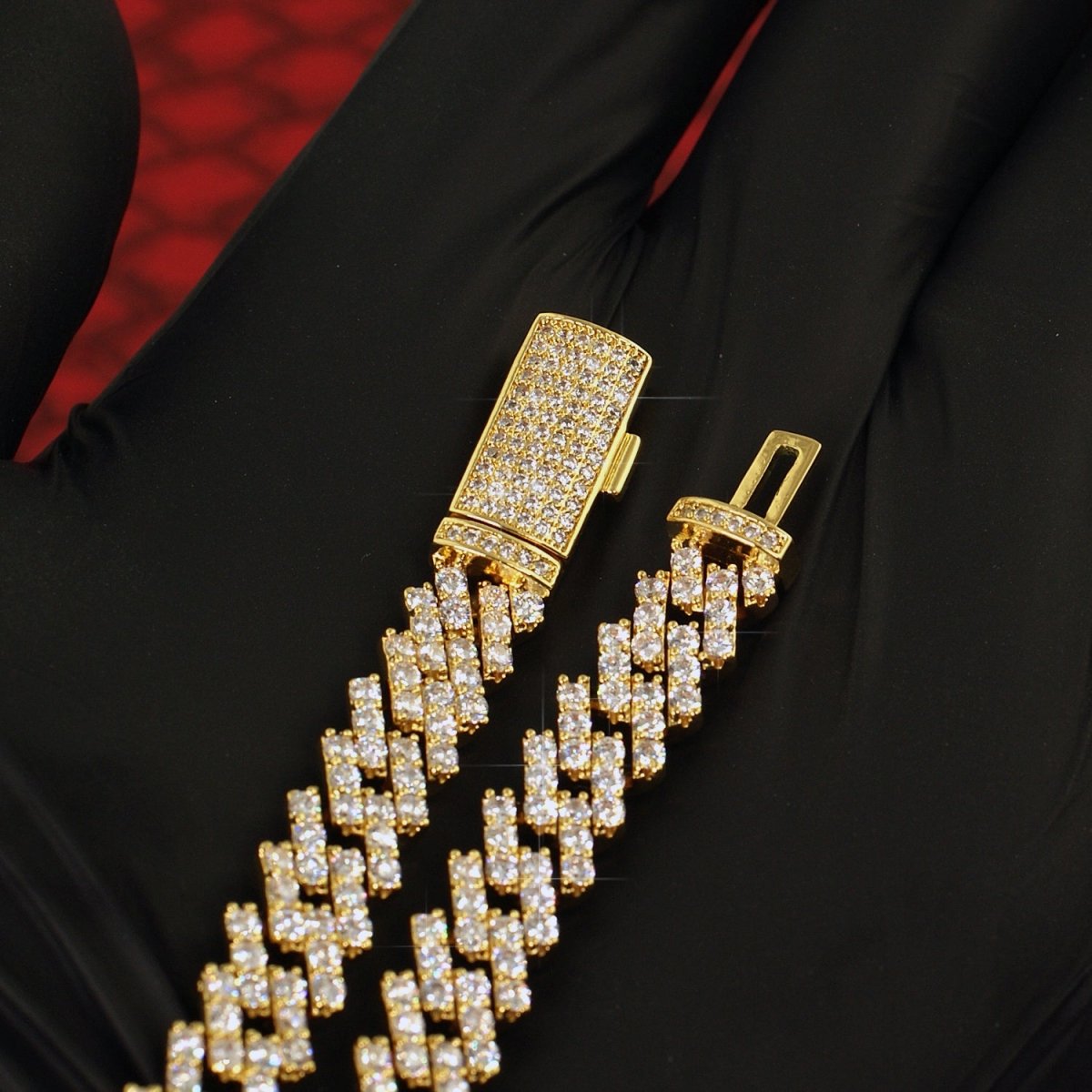 This cuban chain commands attention and envy. Every link has heavy pointer stones prong set up high to hit from every angle. Turn heads everywhere. Rock one or layer them for a killer shine!