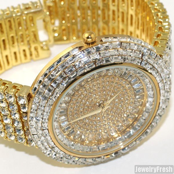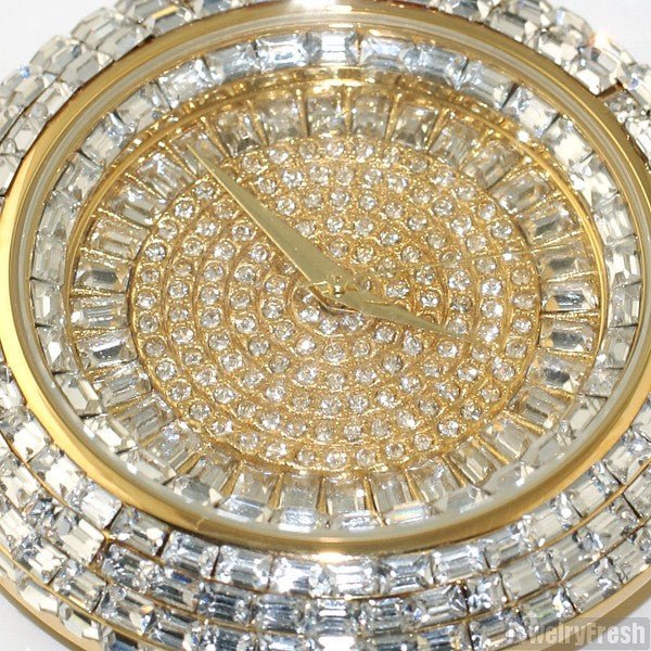 Fully Flooded Gold Ice Orbit Baguette Watch