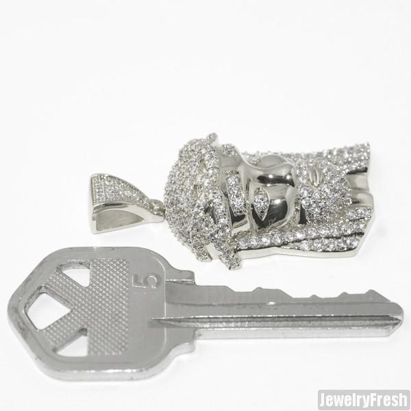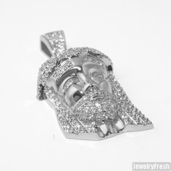 You're looking at a mini sized Jesus head 3D pendant with incredible detail. You seen this piece on celebrities now get the same look for a fraction of the cost. This piece is made with VVS flawless lab made simulated diamonds. All stones are hand set pave style. The piece has a caged back, made in solid brass and wrapped in rhodium. This looks and feels identical to a $1000+ version. Order yours today!