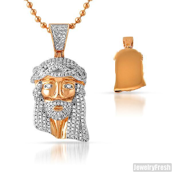 Rose Gold Iced Out Solid Back Micro Jesus Piece
