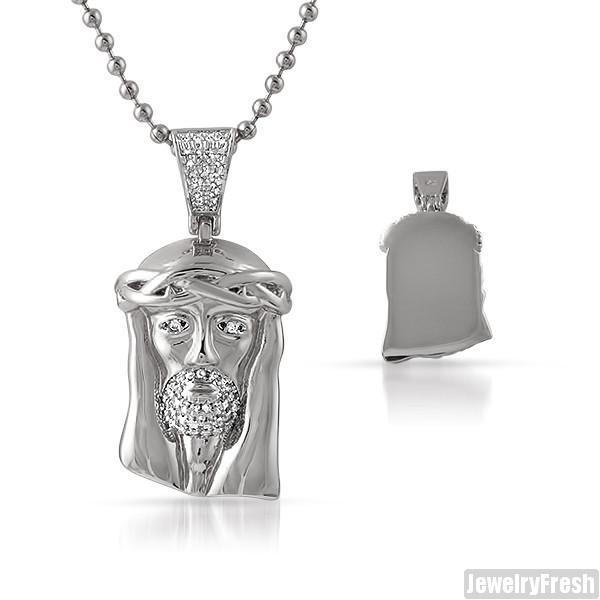 Just released! Our newest micro Jesus pieces are the highest quality ever, with thick solid backs with a high quality solid feel. All stones are flawless VVS simulated diamonds set by hand by our master jewelers. These lab made stones look just like real diamonds. It comes with a free 36 inch stainless steel bead chain. It can be cut down to any length you wish once you receive it.