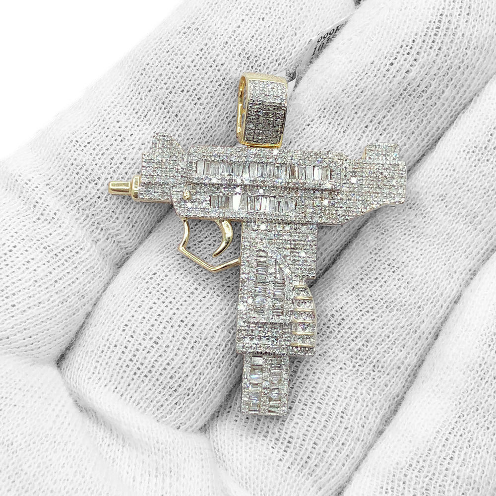 10K Gold Baguette Diamonds Uzi Gun Pendant