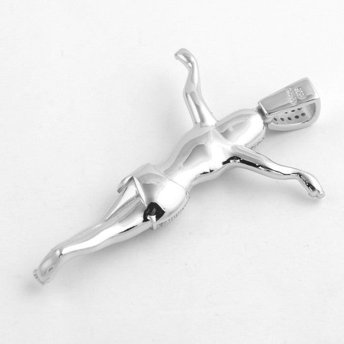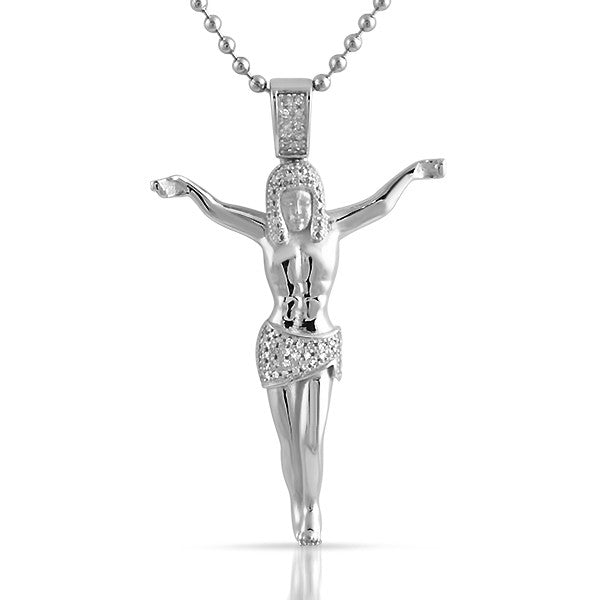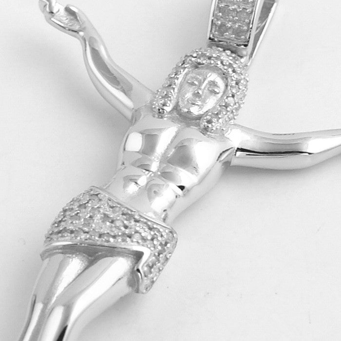 0.45 CTW Genuine Diamond Silver Jesus Crucifix