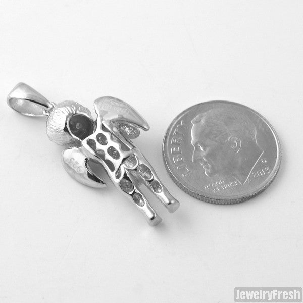 This highly detailed cherub angel is hand made to perfection. Only our most skilled jewelers work on our genuine diamond pieces. This angel is a small micro size in genuine 925 silver. The eyes are genuine, natural diamonds with VS clarity, best of the best. This pendant comes with a 36 inch stainless steel bead chain. You can cut it down to any length you wish.