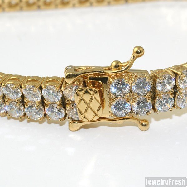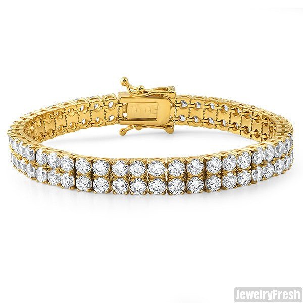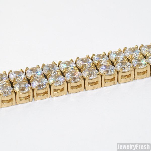 5.5CTW Steel 14K Gold IP 2 Row Bracelet