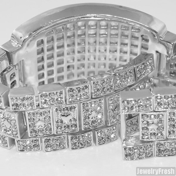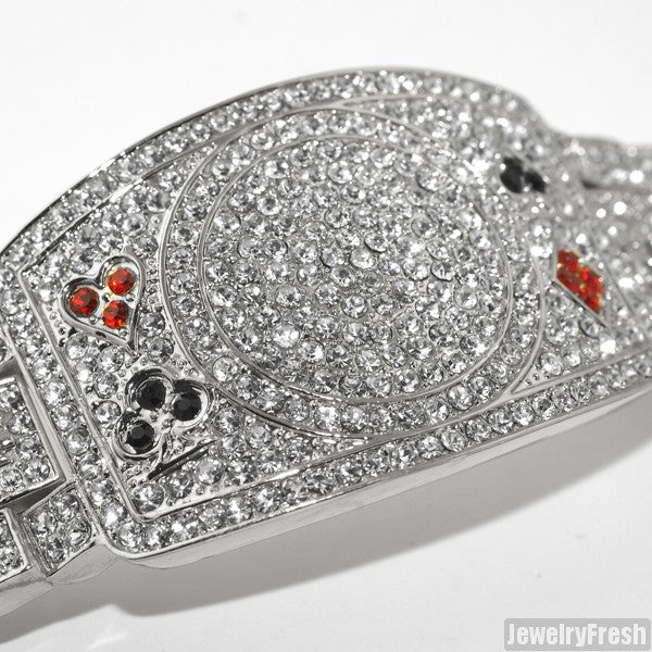 Platinum Tone Iced Out Poker Champion Bracelet