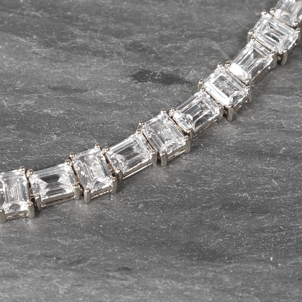 White Gold Pure Water Emerald Cut Tennis Bracelet