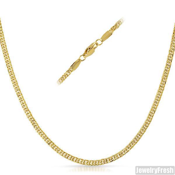 This small sized cuban is perfect for men or women, and fits nicely on small pendants. Matching bracelet is available. It is made out of solid 316L stainless steel and polished to perfection by our expert jewelry production team. 14K IP plating is the best type of plating available. It looks and feels like real gold.