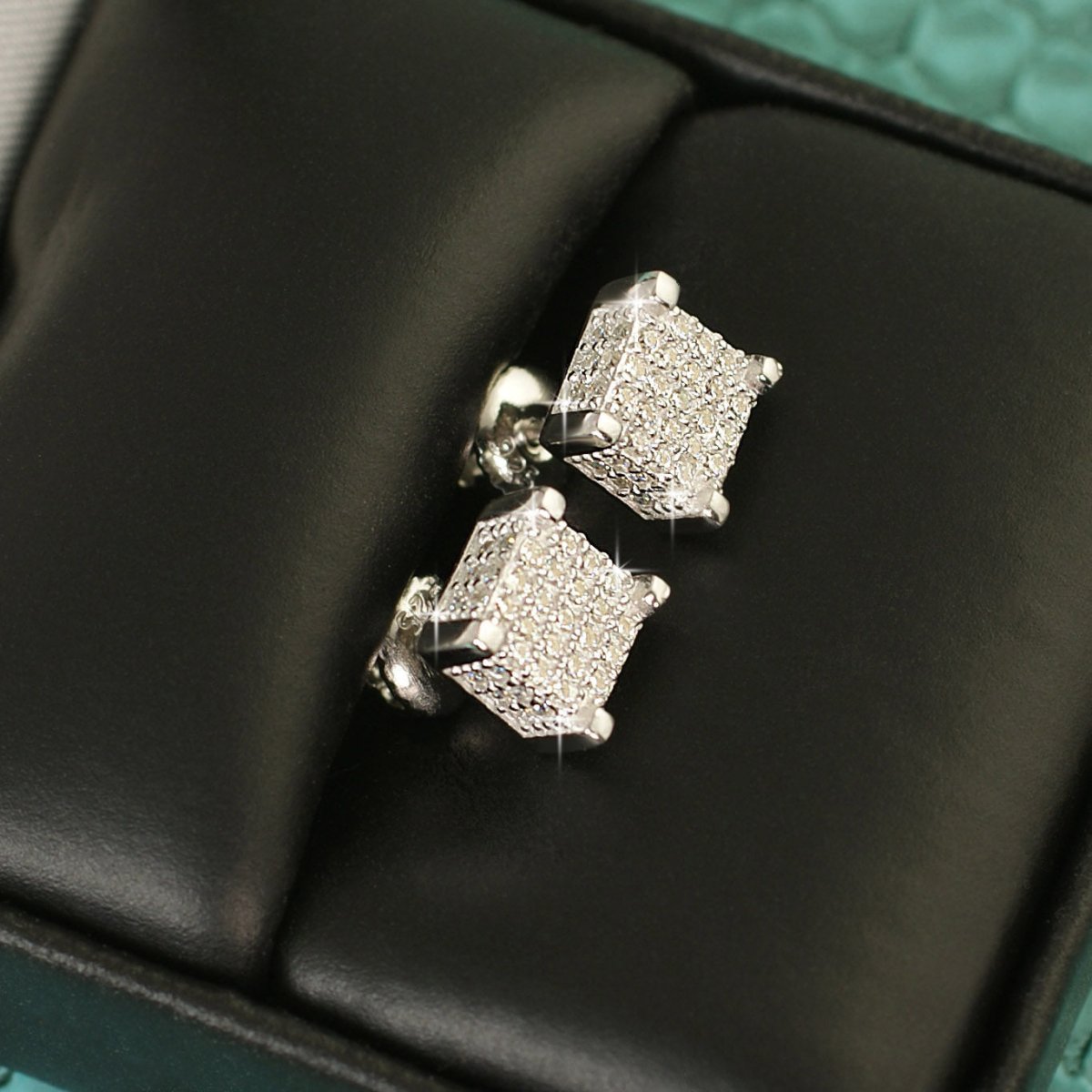 These cube earrings give you the ultimate shine from every angle. Its fully iced front and sides! Order yours today!