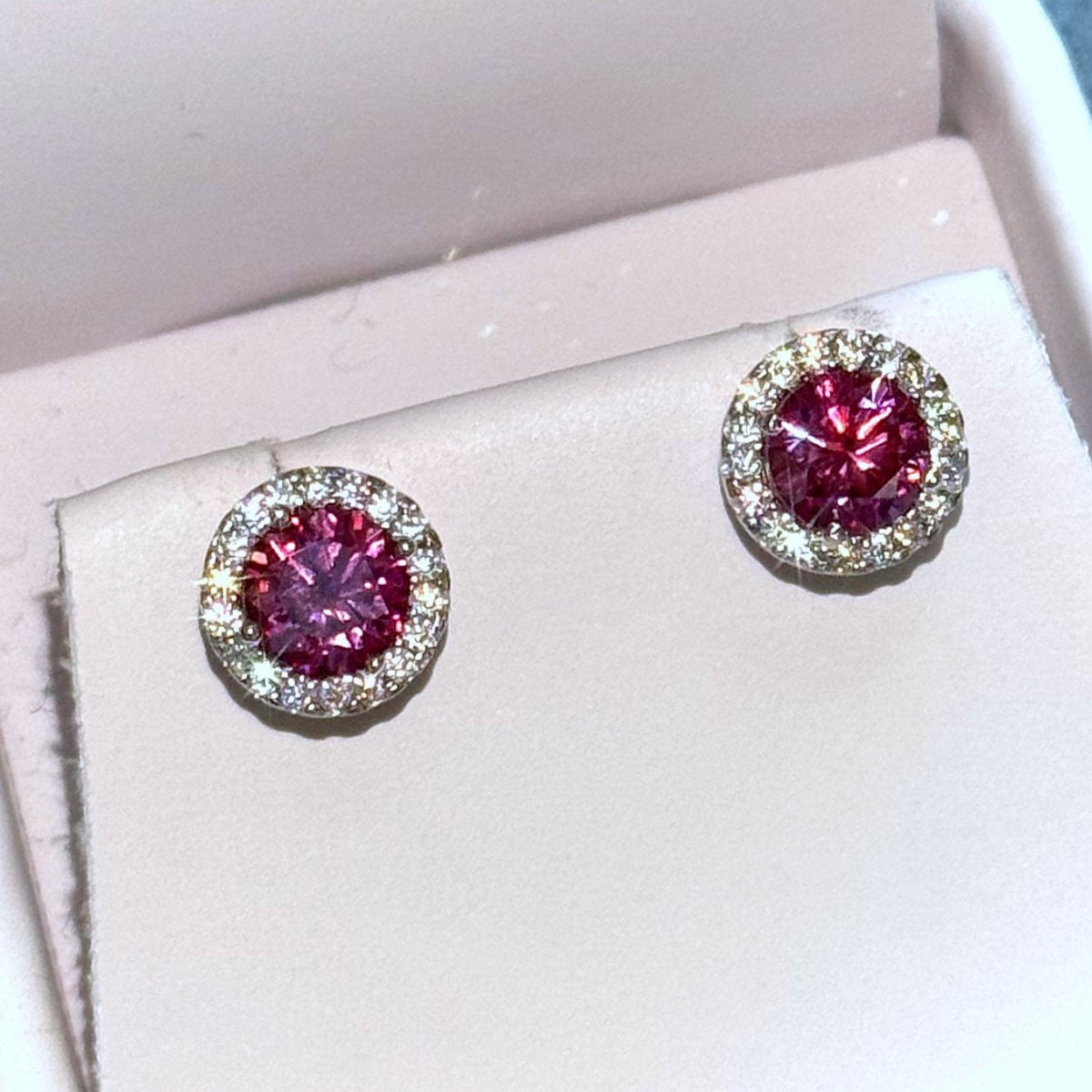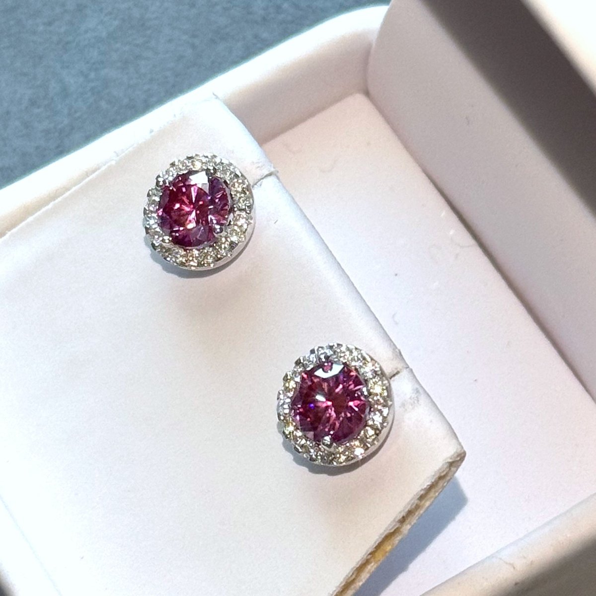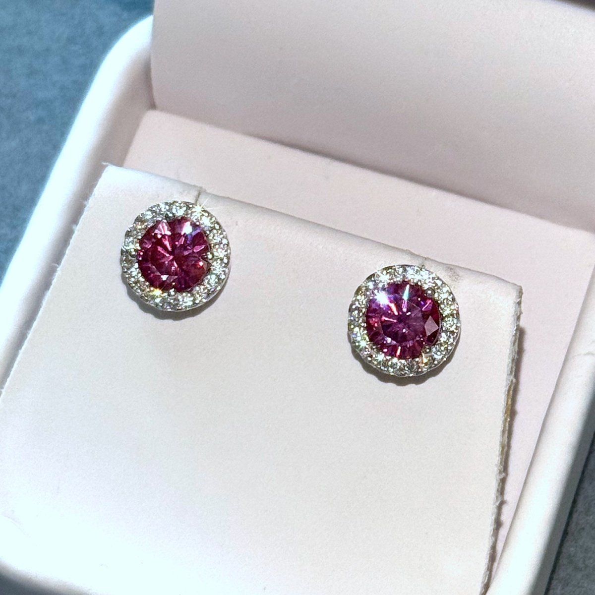 2.00 CTW VVS1 Pink Moissanite Halo Earrings