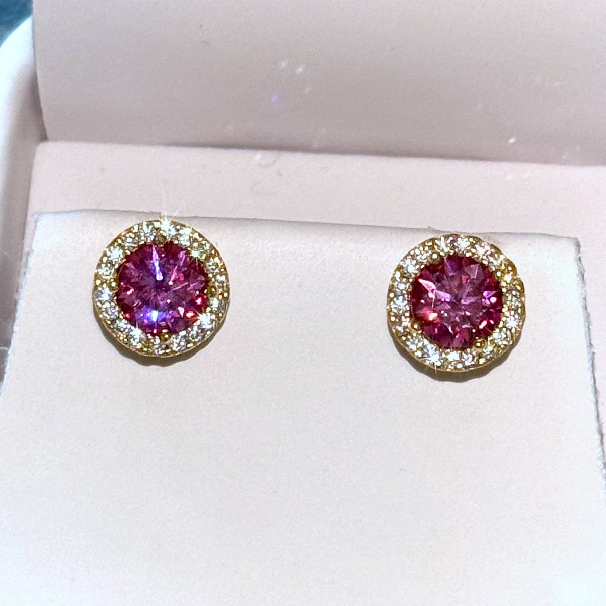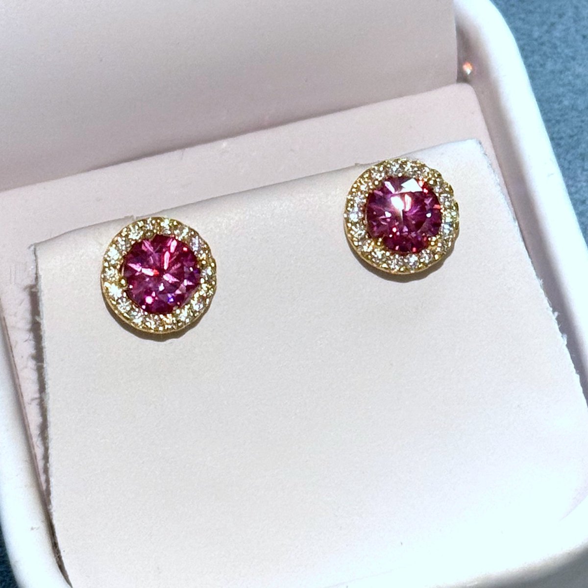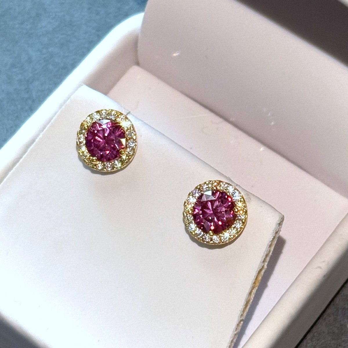 2.00 CTW VVS1 Pink Moissanite Halo Earrings