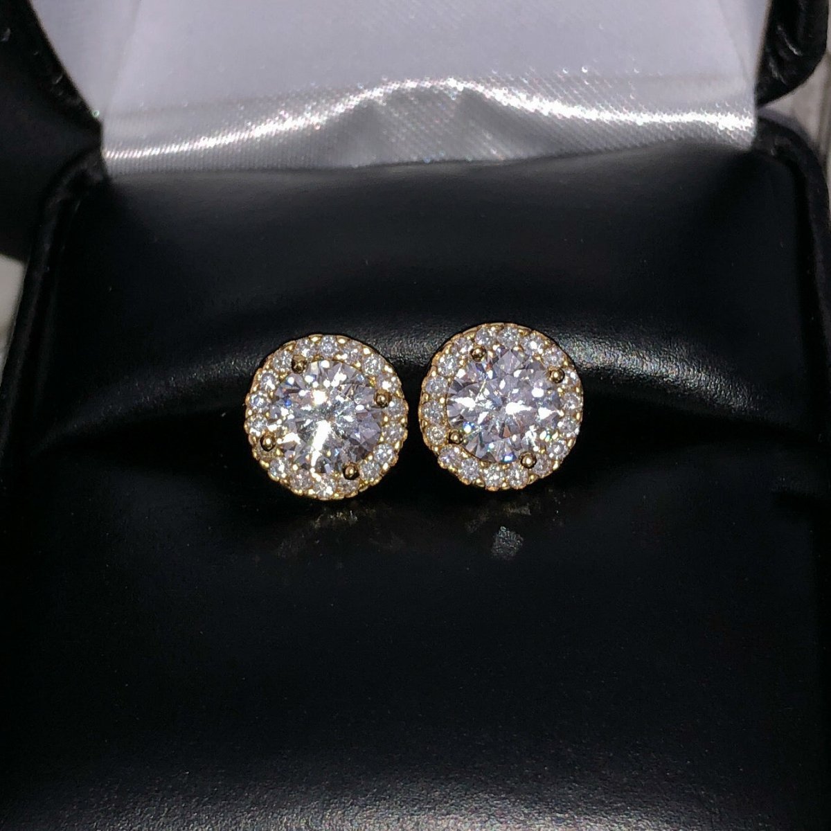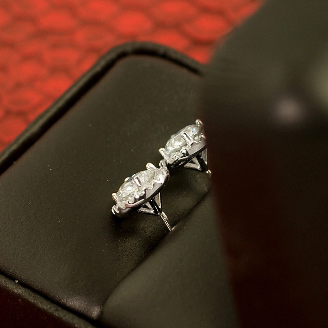 Moissanite stones have a hardness level of 9.25 out of 10 while CZ is only 3-4 and diamonds are 10. These look visually identical to diamonds and even passes many handheld diamond testers. Get the exact look of $15,000+ diamond halo earrings at a much lower price. Order today!