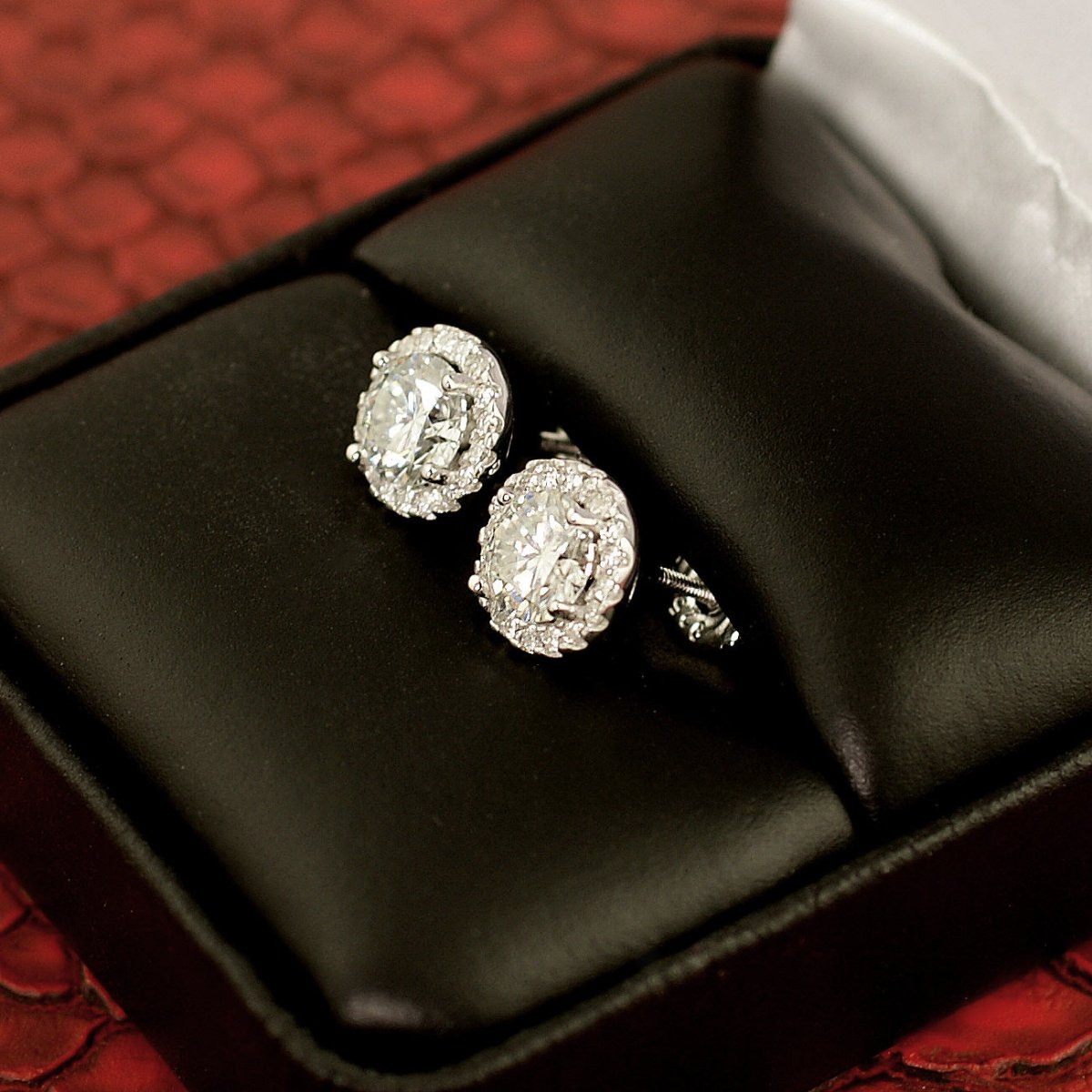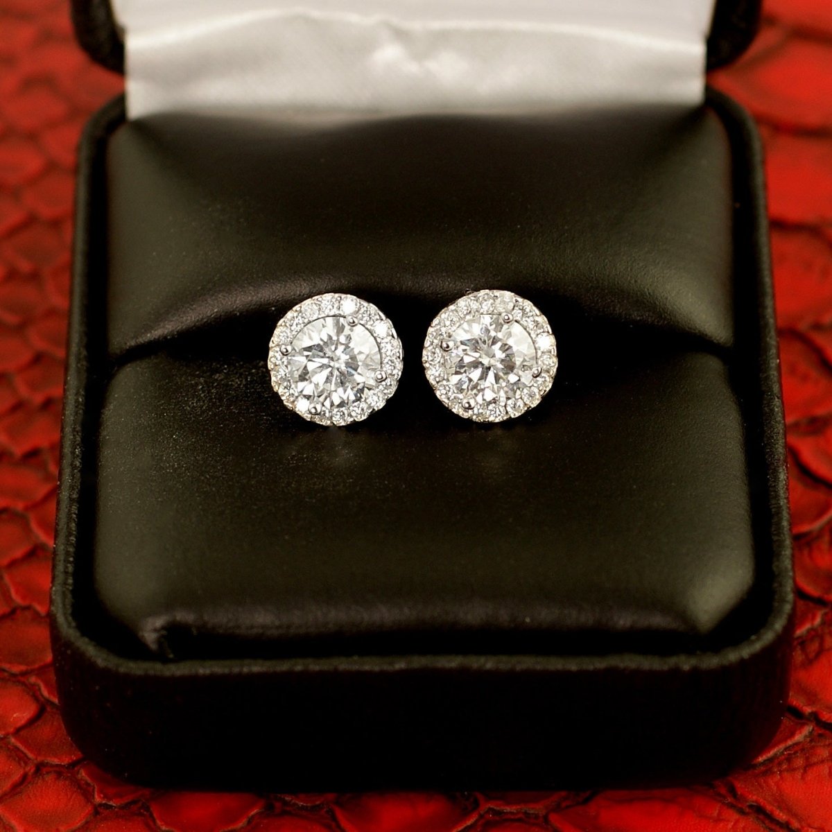 2.00 Carat Certified VVS1 Moissanite Halo Earrings