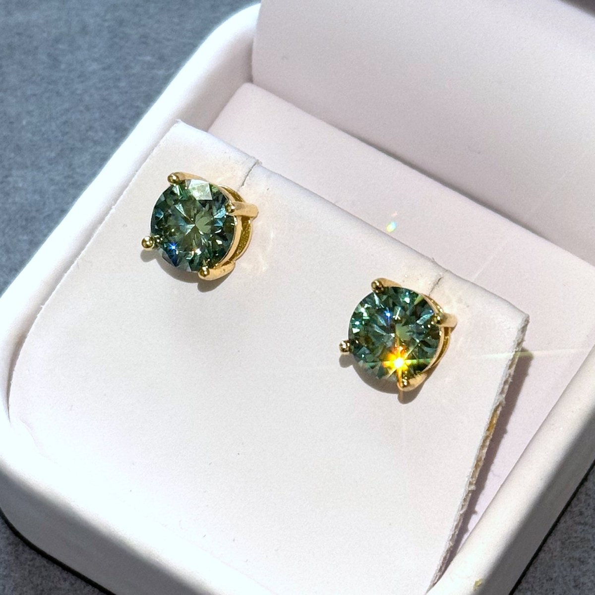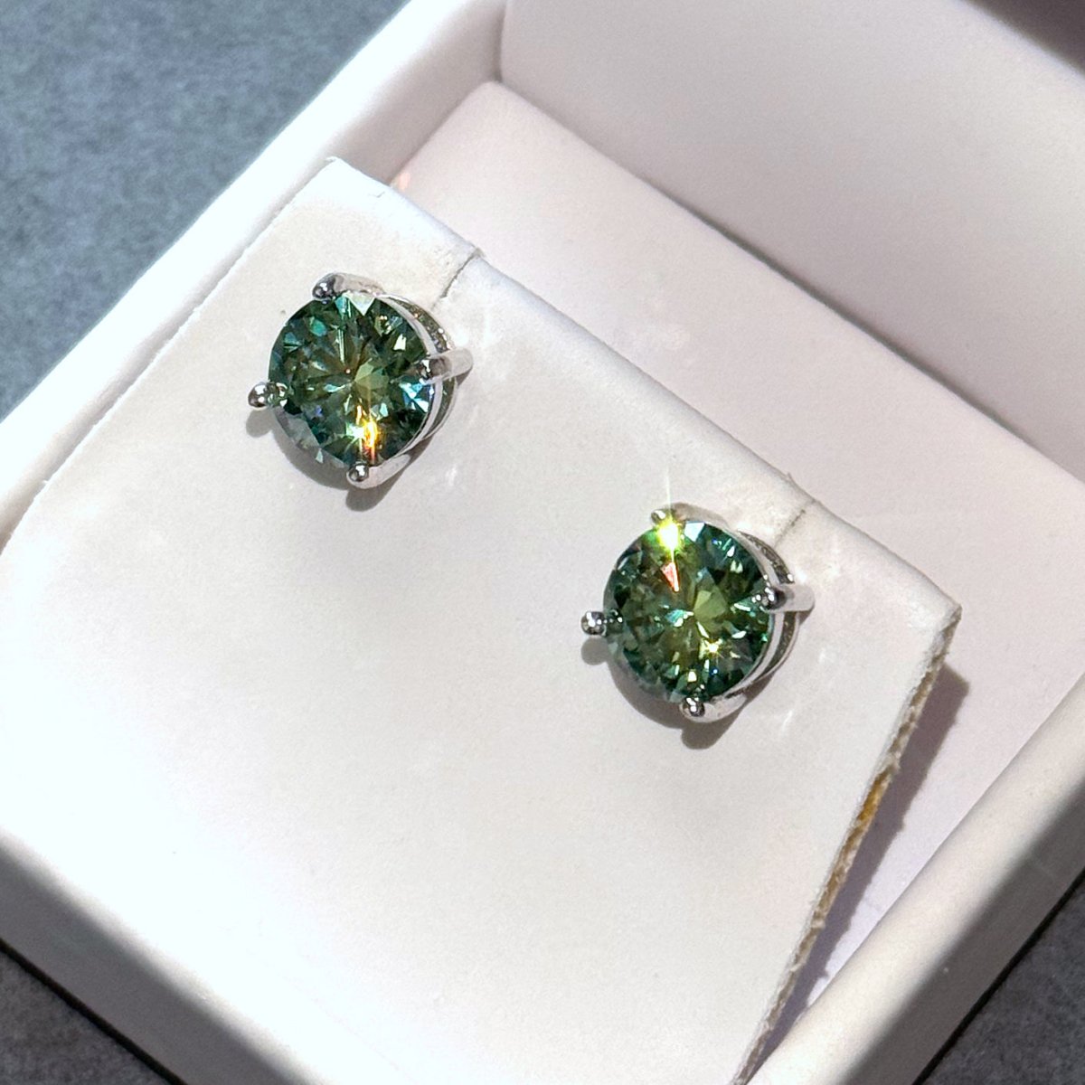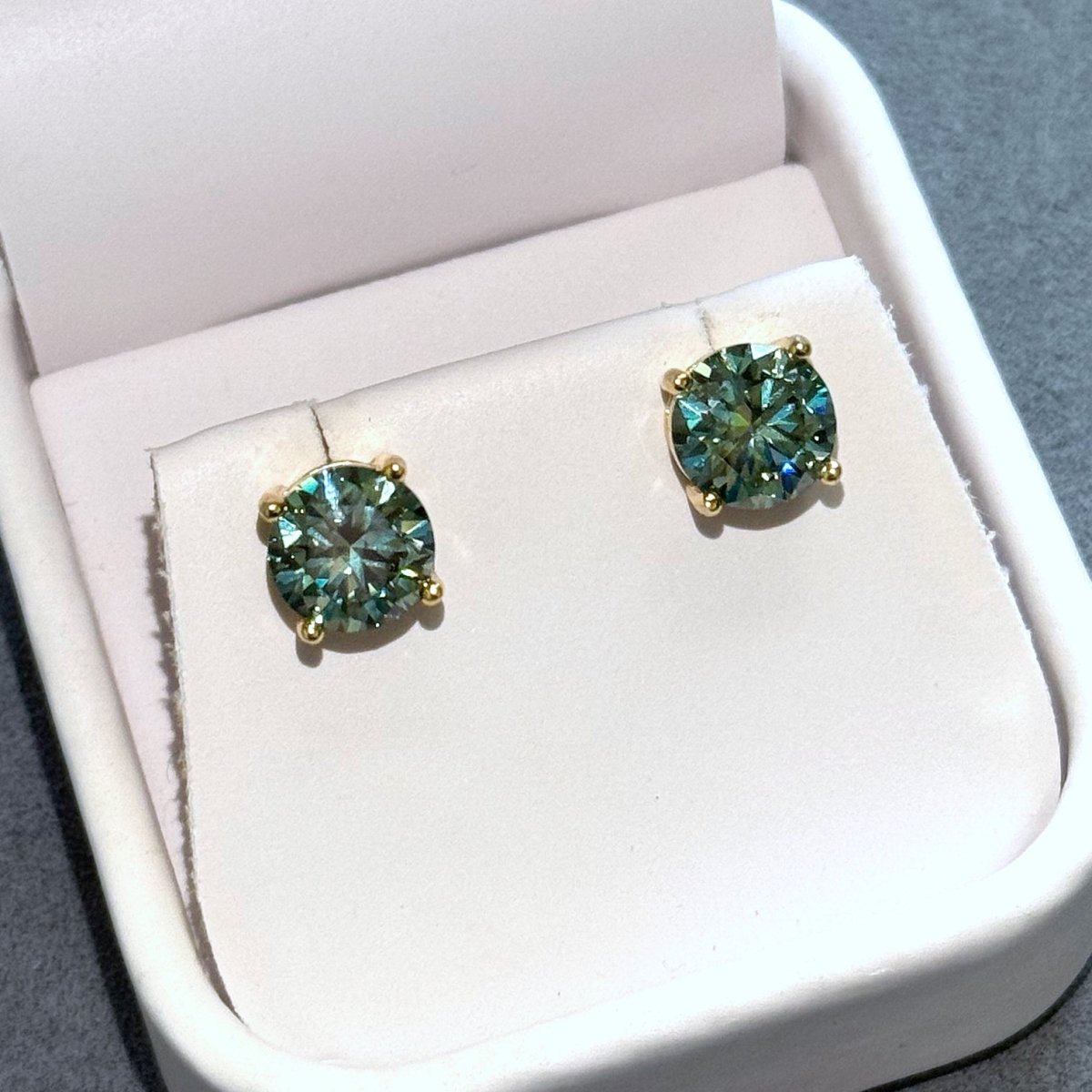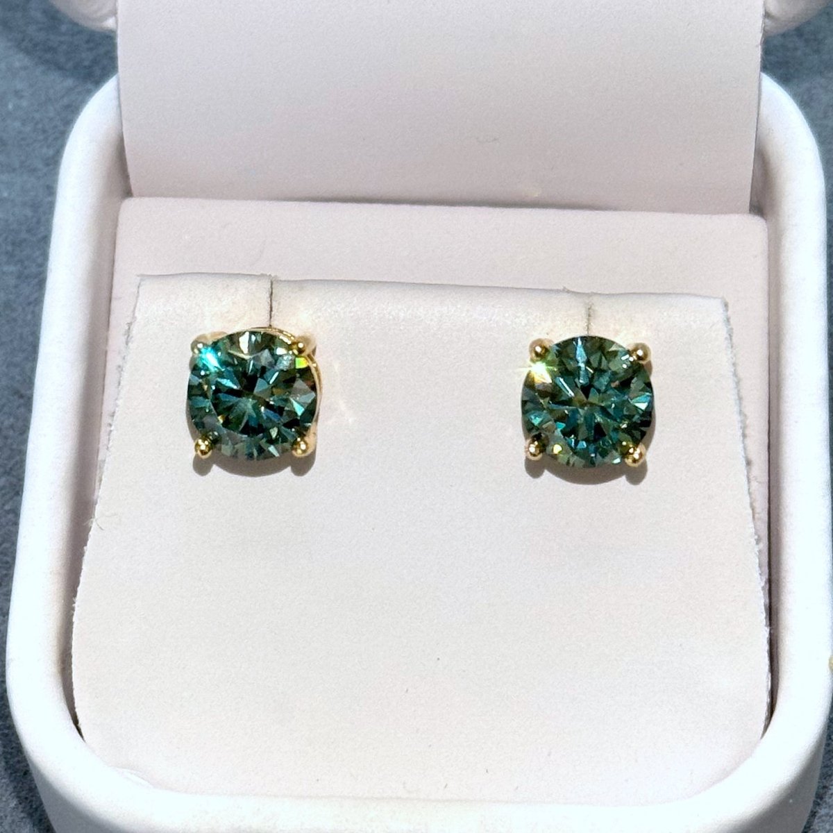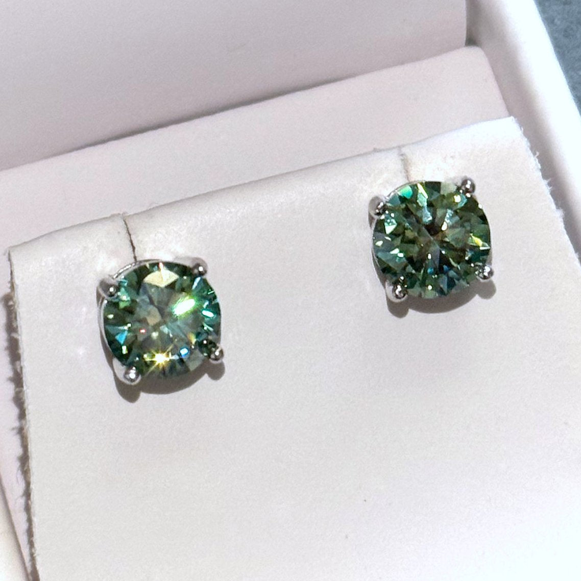 Certified Blue Green Moissanite Round Stud Earrings