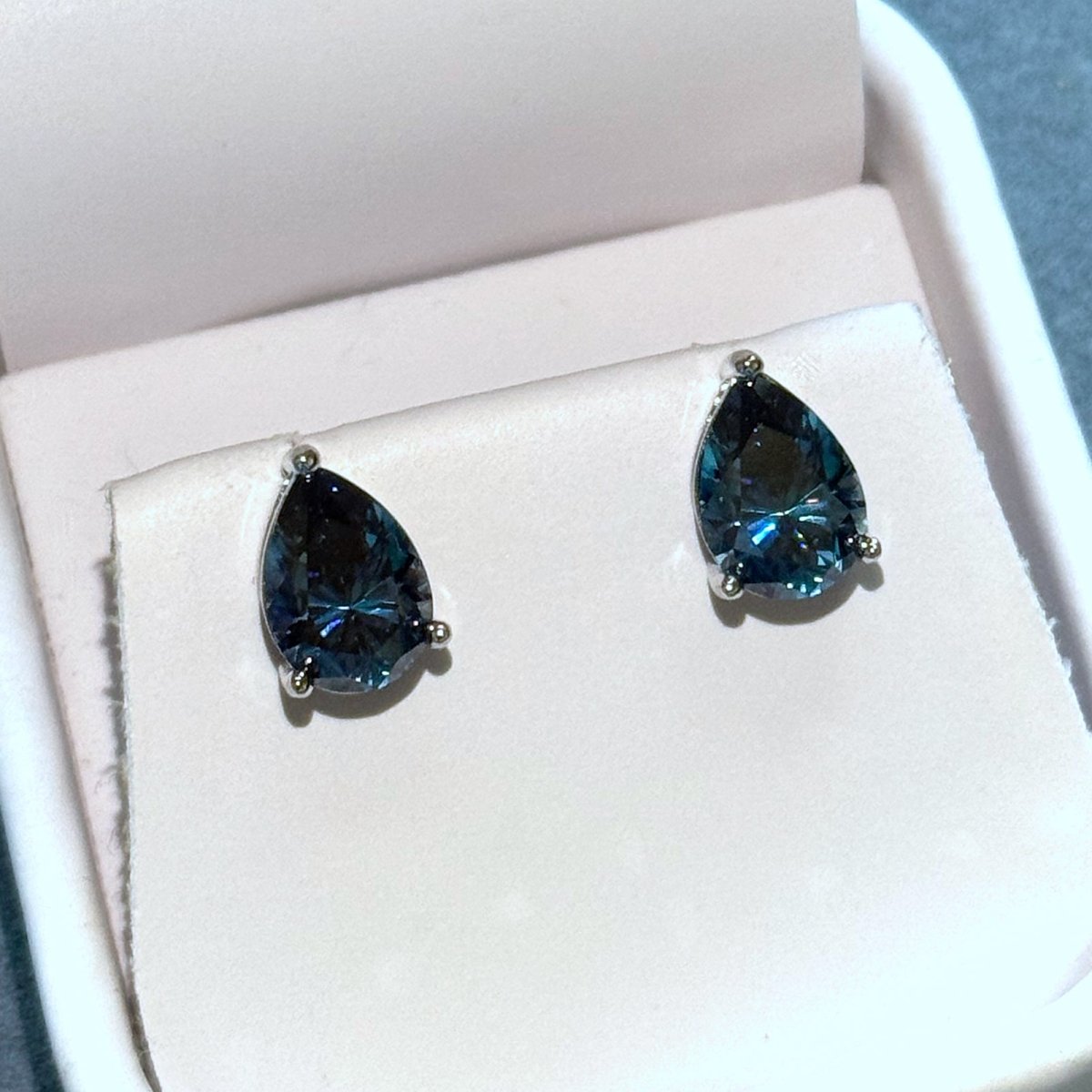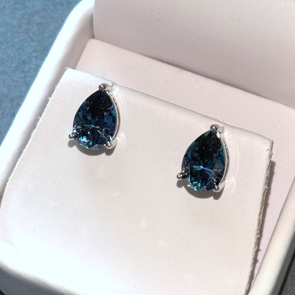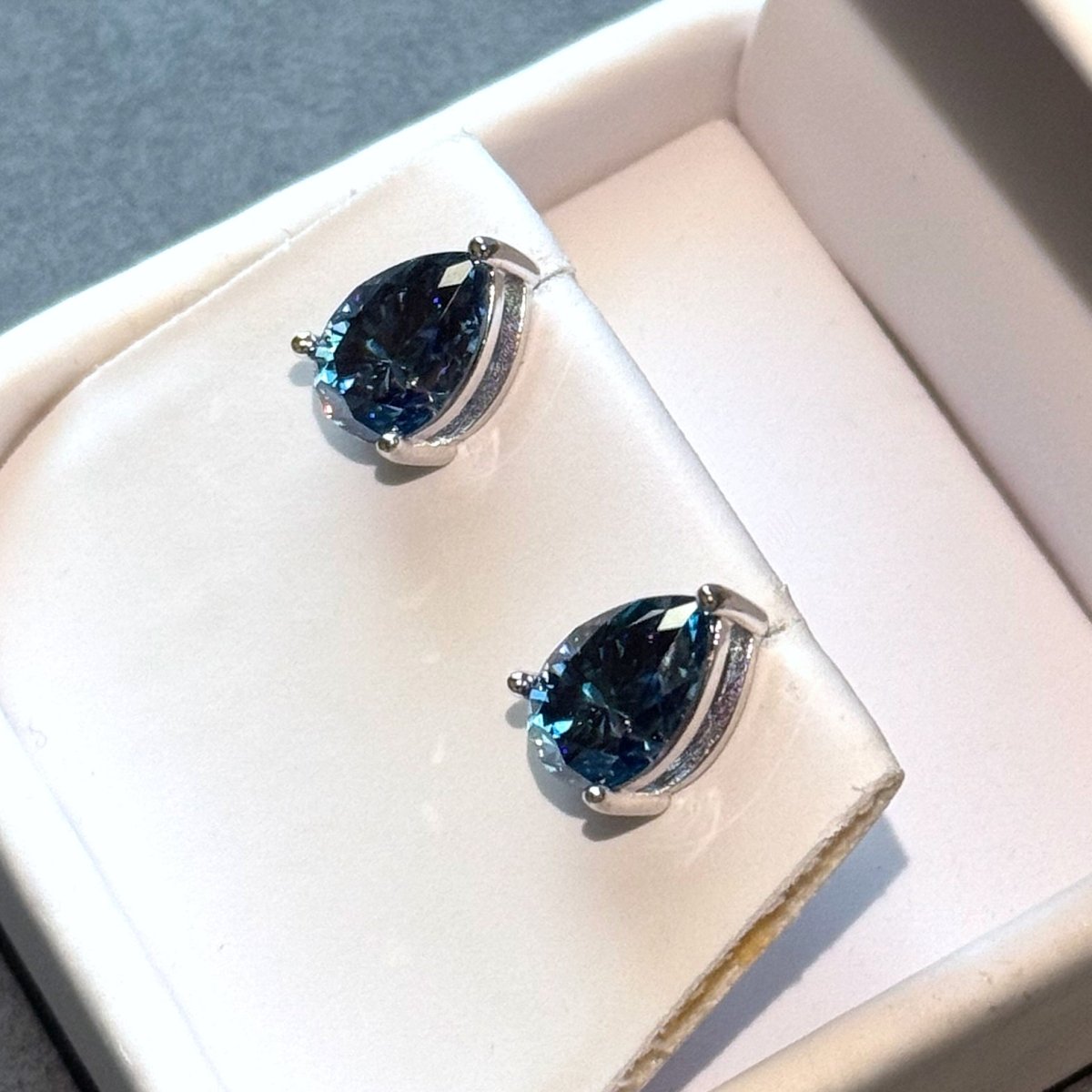 Certified Blue Pear Cut Moissanite Stud Earrings