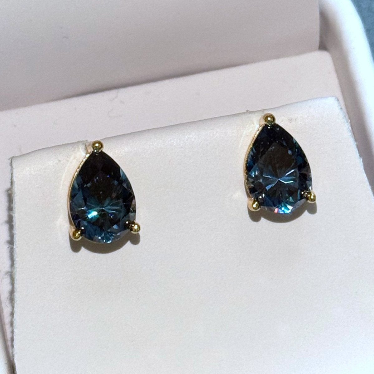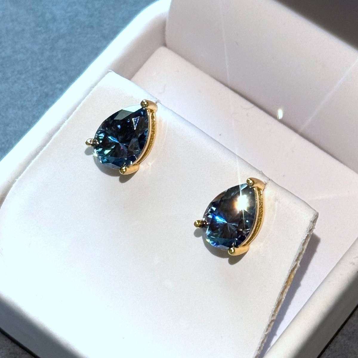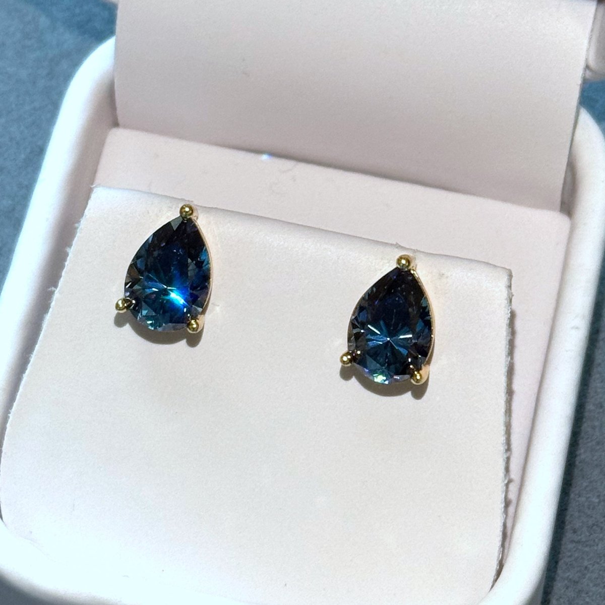 Certified Blue Pear Cut Moissanite Stud Earrings